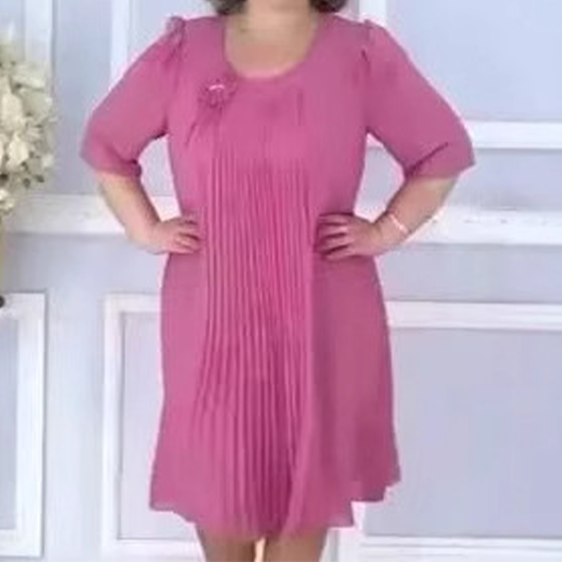 1 * Дамска плисирана рокля с къс ръкав и кръгло деколте за жени