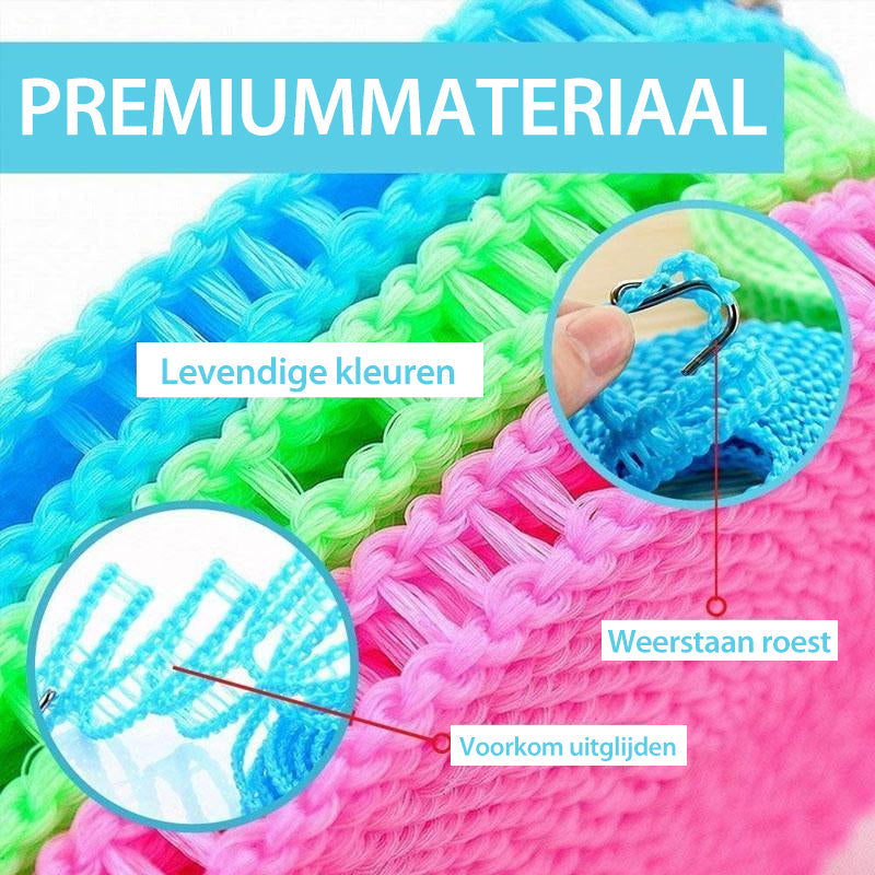 Нашето въже за дрехи е изработено от висококачествено, екологично чисто найлоново въже. В сравнение с други обикновени въжета за бельо, то е по-дебело и по-здраво, с по-добра издръжливост и по-голяма товароносимост. Можете да сушите много дрехи едновременно. Куките от неръждаема стомана са устойчиви на корозия и ръжда и са дълготрайни.