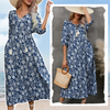 Пакетът включва: 1 * Елегантен флорален печат на жените V-образно деколте дълга рокля