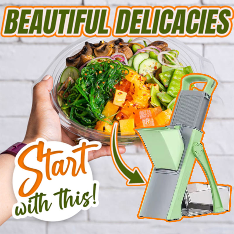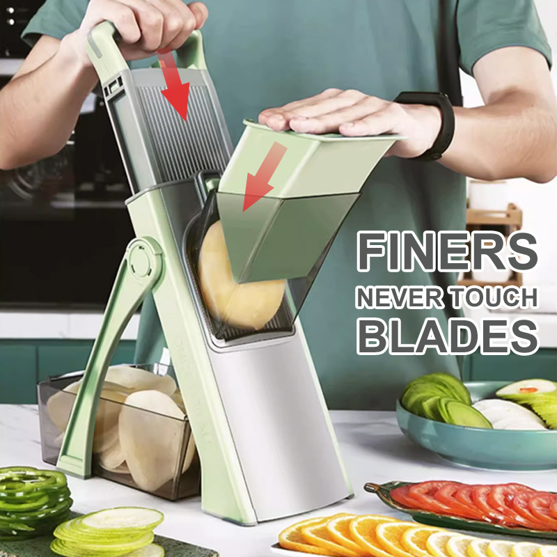 Включва 14 ножа и 30 настройки — от рязане на тънки резени до 8 мм дебели парчета. Идеално за картофи, моркови, краставици и много други!