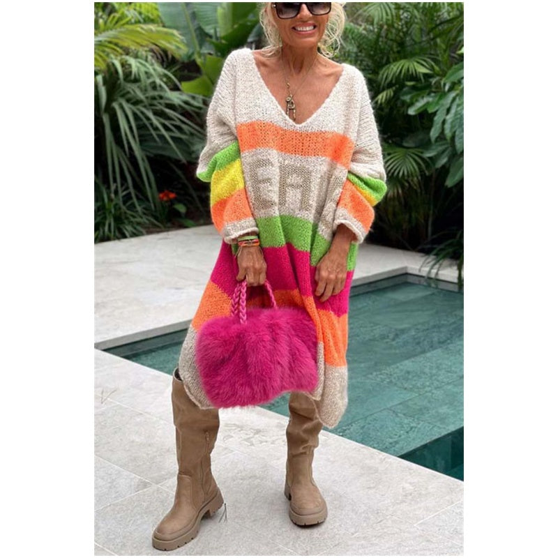 Пакетът включва: 1* Цветен блок V-образно деколте Буквар печат пуловер рокля
