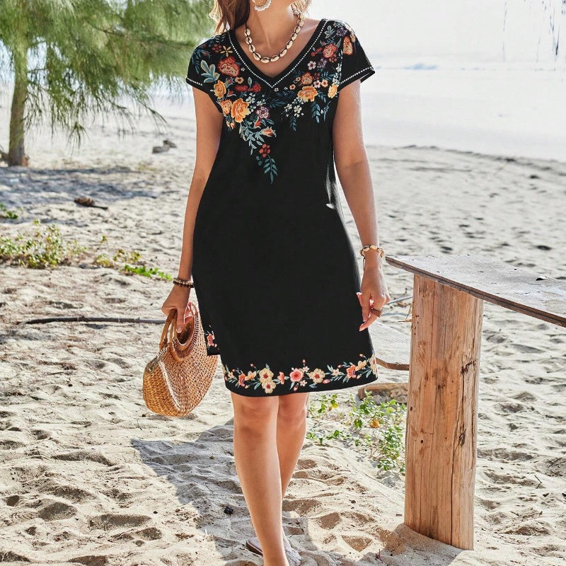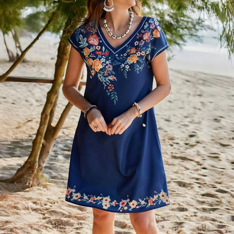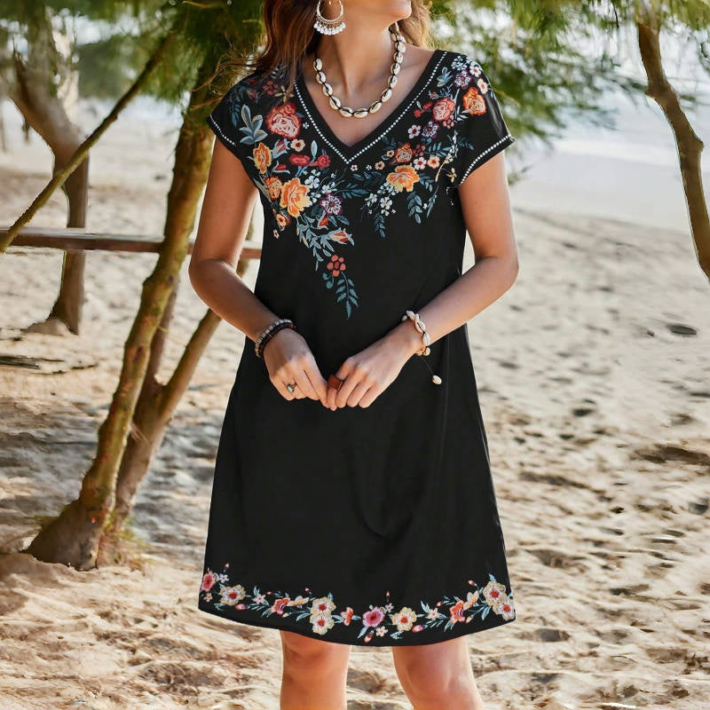 Опаковката включва: 1×удобна рокля с V-образно деколте и цветен принт