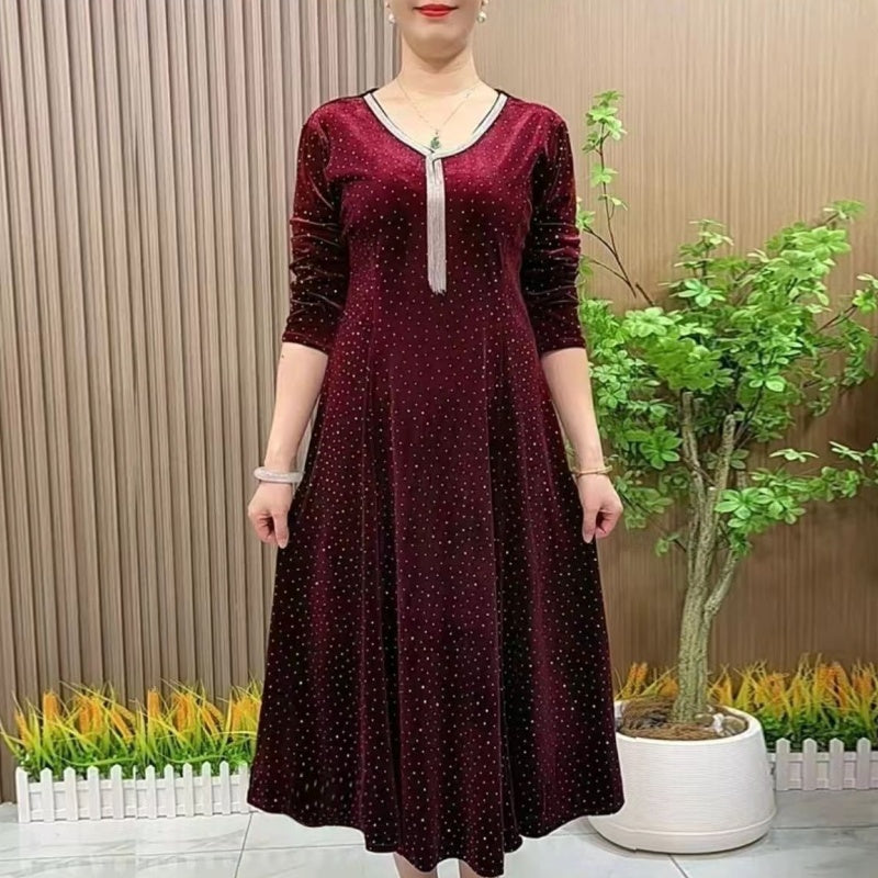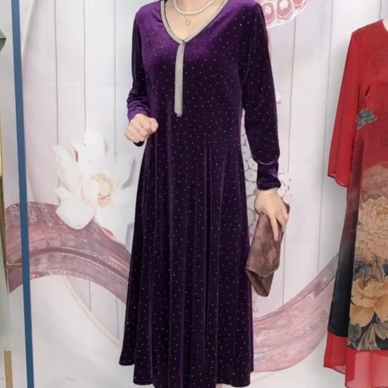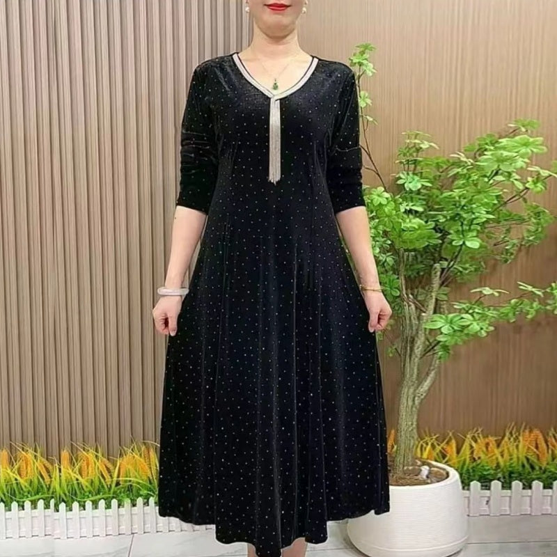 ДЪЛГИ РЪКАВИ: Дългите ръкави подчертават елегантния вид на роклята и осигуряват допълнителна топлина, което я прави идеална за по-студените дни.