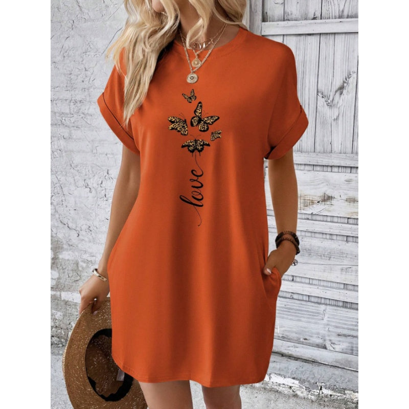 Пакетът включва:1*Женска ежедневна мини рокля с кръгло деколте