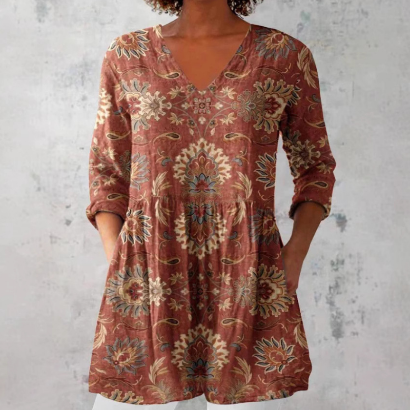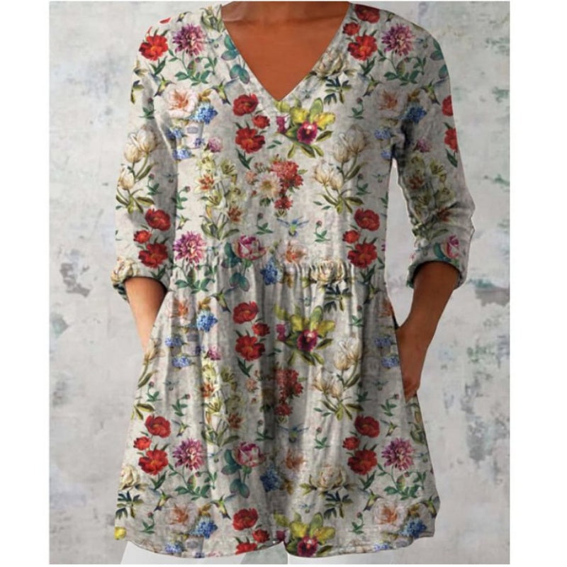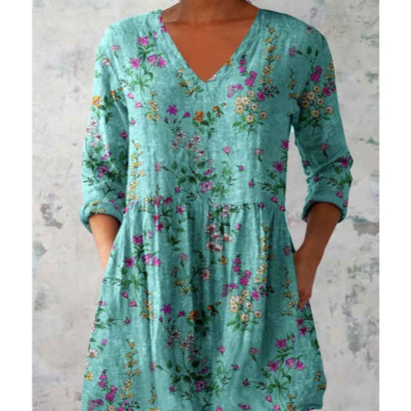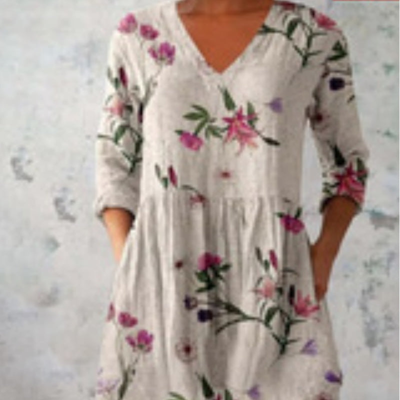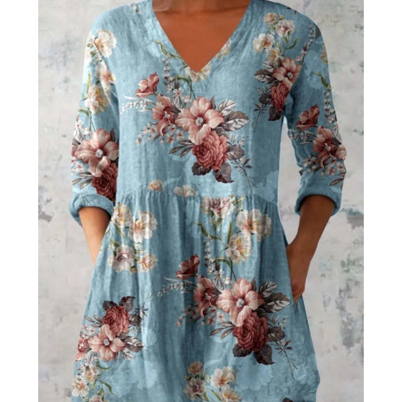 Пакетът включва: 1*Дамска ежедневна рокля с V-образно деколте и принт